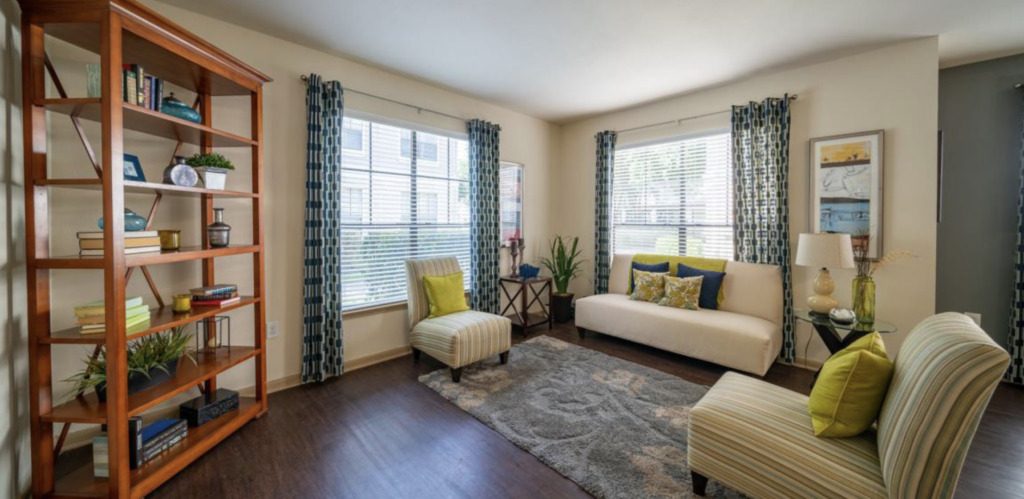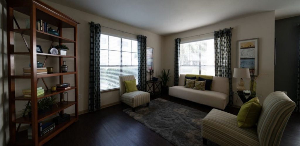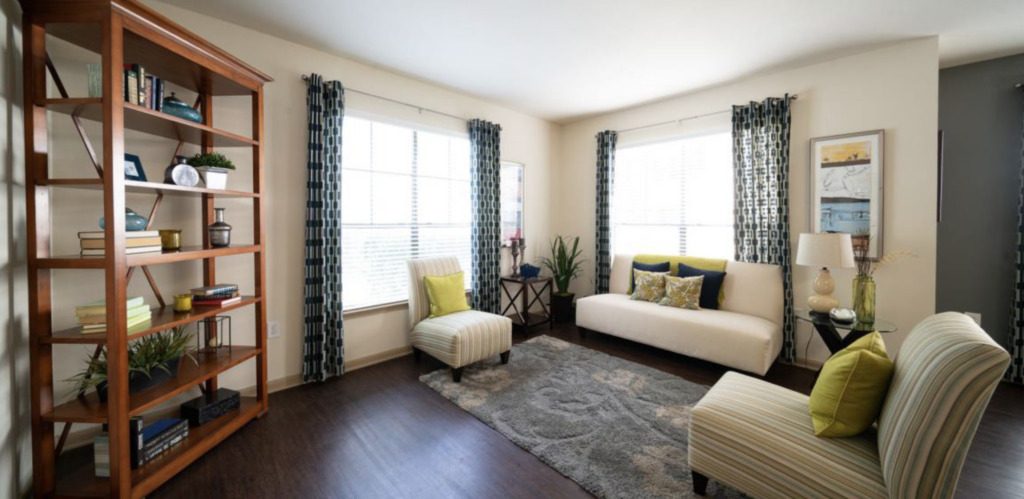 Staging interior spaces is an excellent way to breathe life into your photos. Some simple furniture and décor goes a long way in helping the viewer imagine the space’s potential. This strategy is very effective for multifamily renters and is the premise of model units. If you do not have staging furniture, some companies will rent out prop furniture for photoshoots. Alternatively, virtual staging apps and programs allow you to “drag-and-drop” furniture and décor into empty images.
