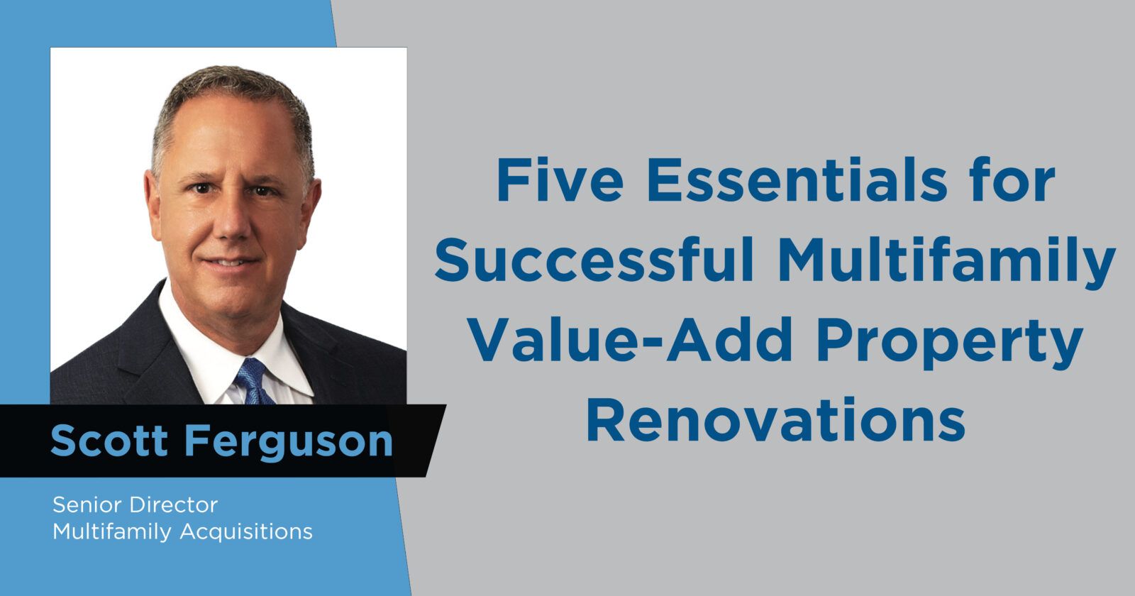 Scott Ferguson, Sr. Director – Multifamily Acquisitions, shares five top value-add project areas that lend the biggest potential ROI for any potential multifamily investment property.